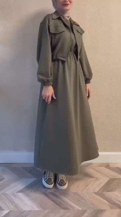 Stay warm and stylish this winter with the BADAM Maxy. Made from cozy Jersy, this long dress features a coat, button pockets, and trousers for ultimate comfort. Perfect for the chilly months ahead.